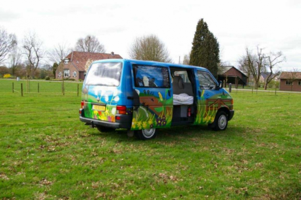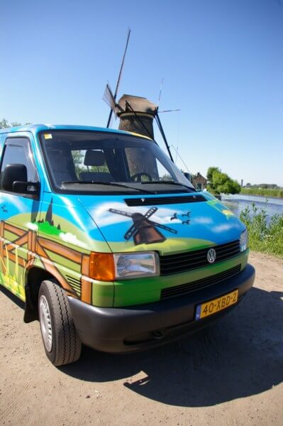 De uniek beschilderde Volkswagen camper Holland is geschikt voor 2 tot 3 personen. De Volkswagen Transporter T4 staat bekend om zijn betrouwbaarheid en gebruiksgemak. Door zijn compacte afmetingen is hij wendbaarder dan een grote camper en kun je op meer plaatsen komen.